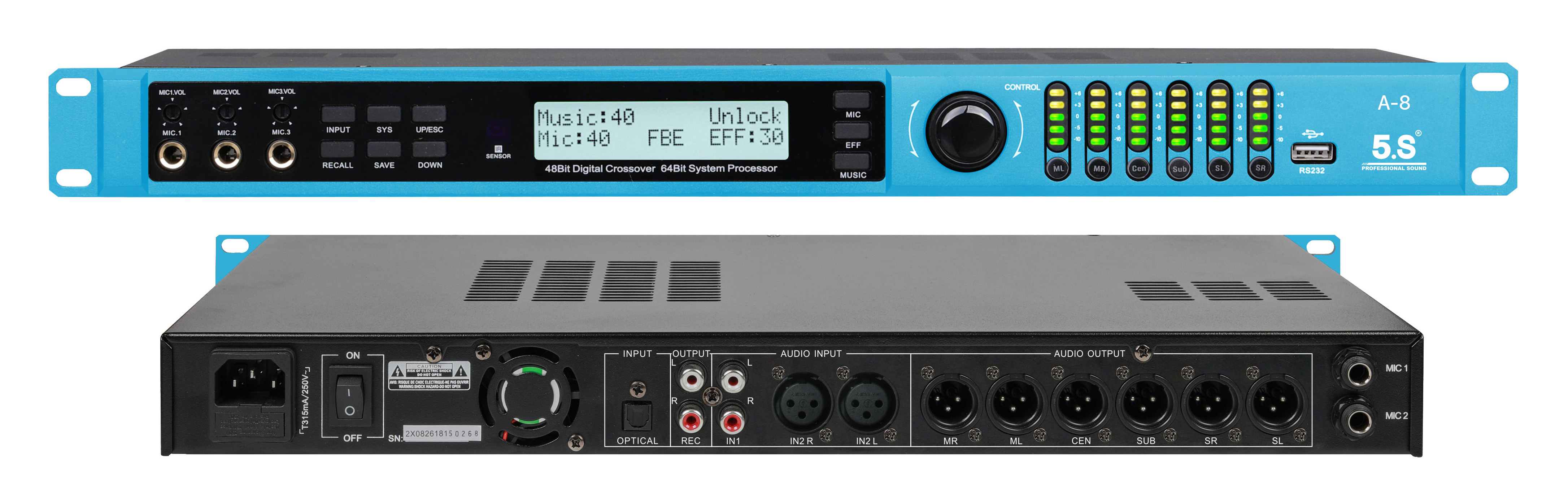 8 sử dụng chip 5 dòng ADI mới nhất, bộ xử lý DSP lõi kép tốc độ cao 64-bit Kênh âm nhạc có 9 đoạn bộ cân bằng âm thanh nổi PEQ và tự động nhận dạng đầu vào âm thanh sợi quang.