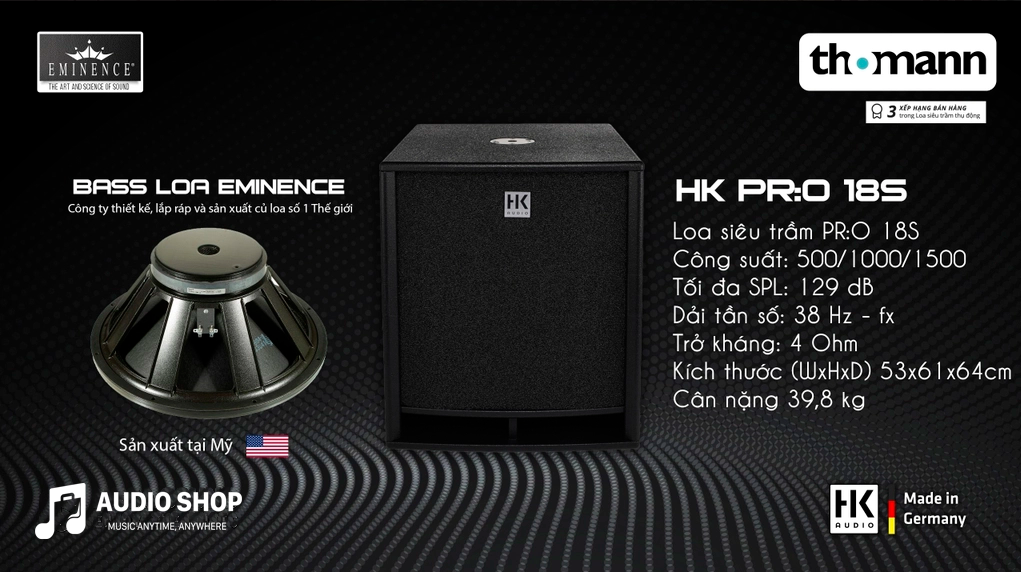 HK PR:O 18S - Top 3 xếp hạng bán hàng loa siêu trầm thụ động bởi Thoma