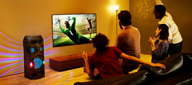 Bảng điều khiển cảm ứng LED được chiếu sáng và giật gân để dễ dàng kiểm soát nhạc ngay cả trong bóng tối Tăng cường Đảng với Loa bổ sung - Kết nối và thêm nhiều loa hơn với Chuỗi bên không dây qua Wi-Fi
