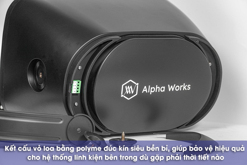 Các dòng loa treo tường của Alpha Work vốn nổi tiếng về độ bền bỉ cực cao, và AW82 cũng không ngoại lệ. Thành phần tạp nên vỏ loa là polyme đúc kín, kết hợp cấu trúc bên trong được tạo ra từ polypropylene và màng loa tweeter chống ẩm, giúp ngăn chặn toàn bộ tác động của nước mưa gây ảnh hưởng xấu tới loa.