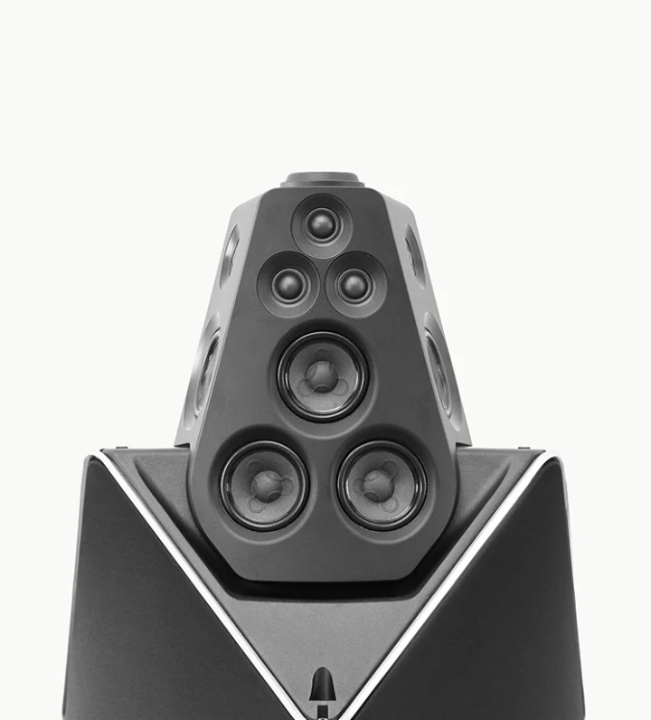 Cùng với đó là phần chân đế bằng gỗ veneer sồi được uốn cong để nâng kết cấu lớn của loa lên khỏi sàn, tạo cảm giác loa như đang lơ lửng trong nhà bạn.